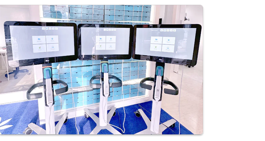 当法人ではお口の中を写す口腔内スキャナー「iTero Element」を、2018年から先駆けて導入し、現在は最新機種「iTero Element 5D Plus」を含め8台を稼働させています。これにより、従来は粘土のような材料をお口に入れ30分耐えなければならなかった型どりも、わずか3分の撮影で完了。