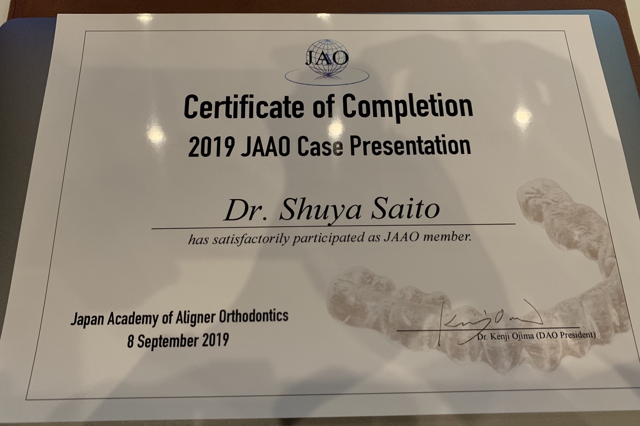 2019年の9月に東京にて開催。100名を超えるの参加者の中、非抜歯症例1ケース、抜歯症例1ケースについて発表しました。インビザライン矯正の治療法について、学会参加メンバーで議論が行われました。