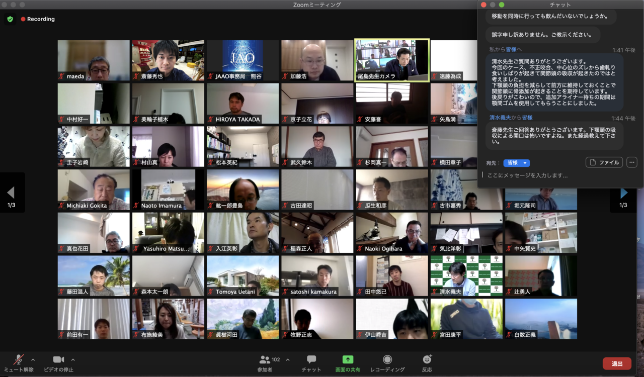 2020年の3月に東京にて開催。50名の参加者の中で、非抜歯症例2ケースと抜歯症例1ケースの合計3症例を発表しました。また、インビザライン矯正の治療法について、学会参加メンバーで議論が行われました。
