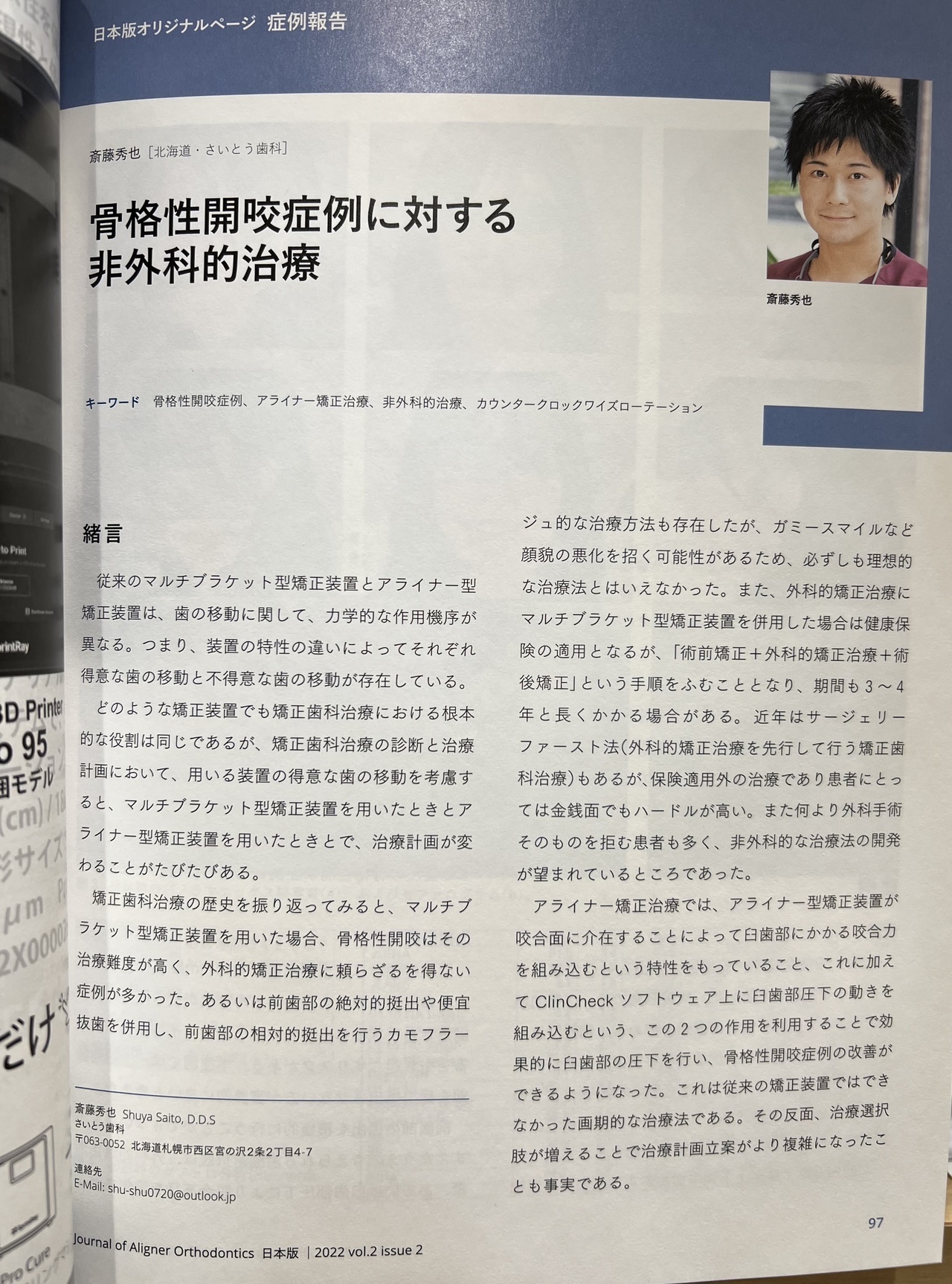 マウスピース矯正の教科書と言われる「JOURNAL OF ALIGNER ORTHODONTICS」を執筆しました。