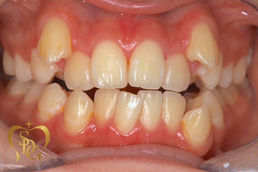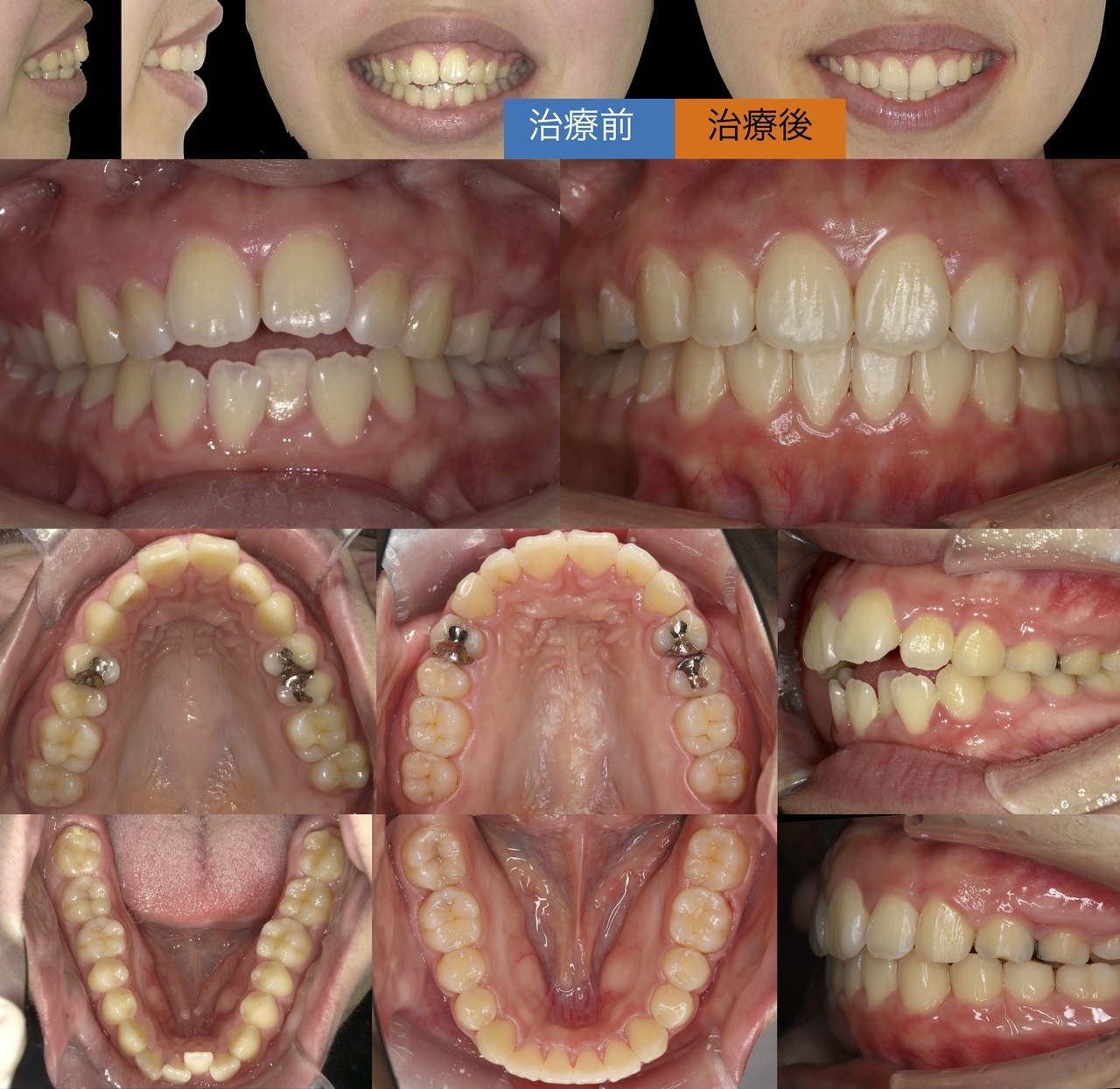 上下の前歯に大きな叢生(ガタガタ)があり、特に下あごは抜歯が必要なほどでした。しかし精密な診断と治療計画により、歯を抜かずに短期間で歯を整える治療ができました。
