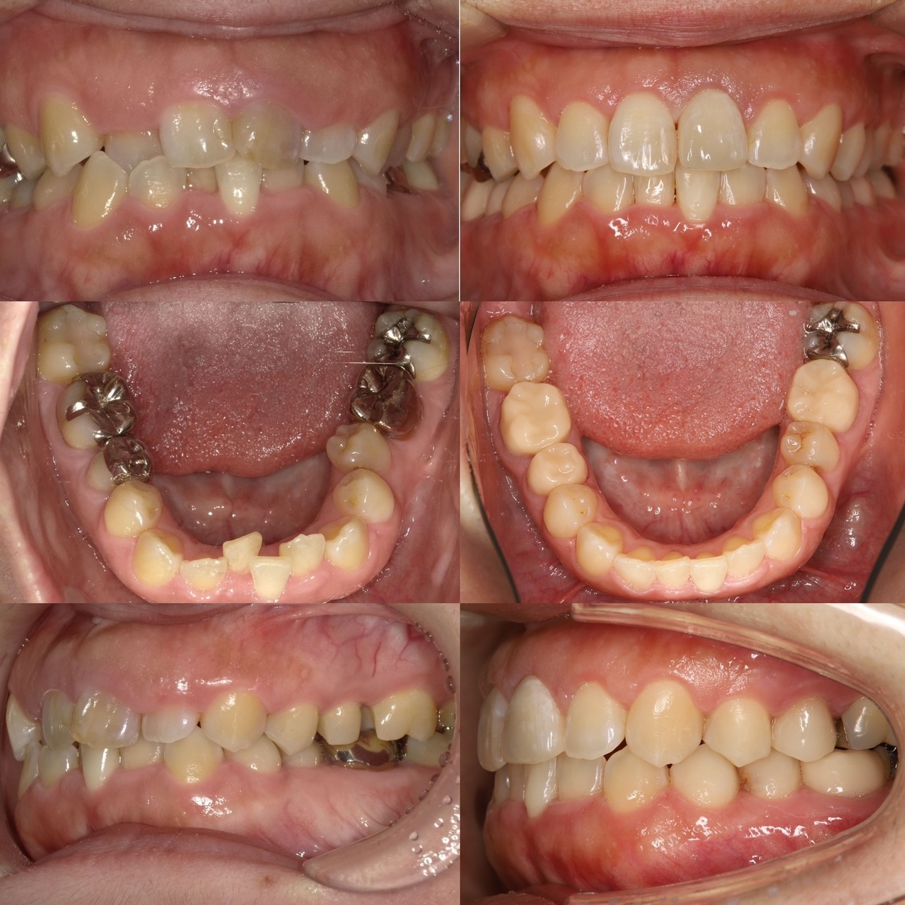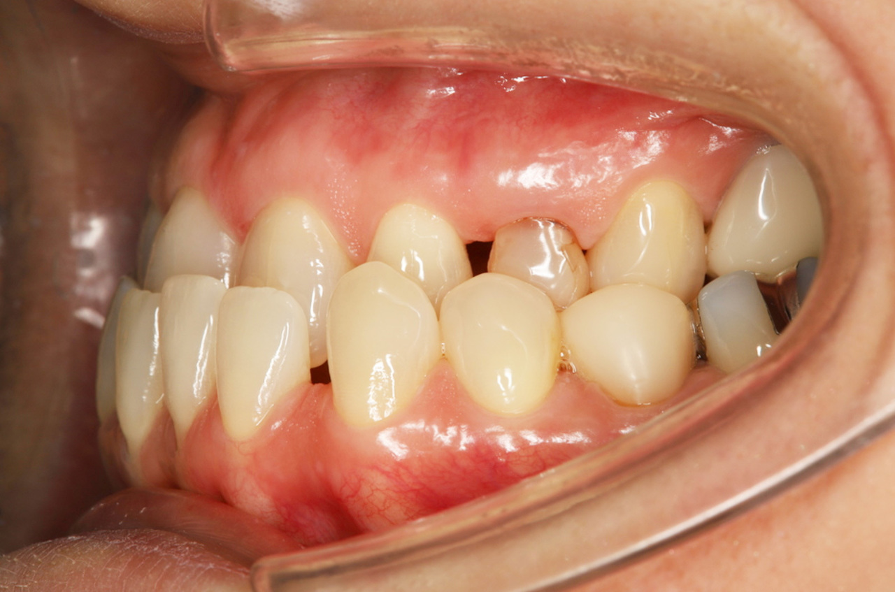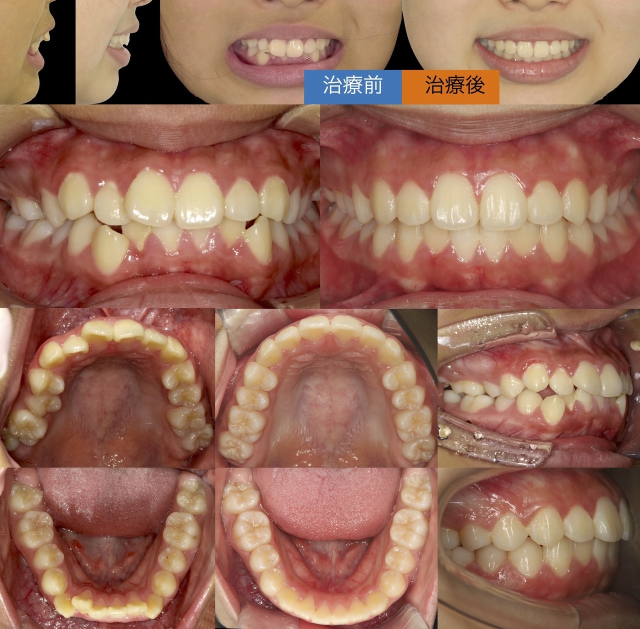 治療内容 | 奥歯の高さが低く、前歯を後方に移動する方法をとると、矯正後の咬み合わせが悪くなりやすい歯並びでした。