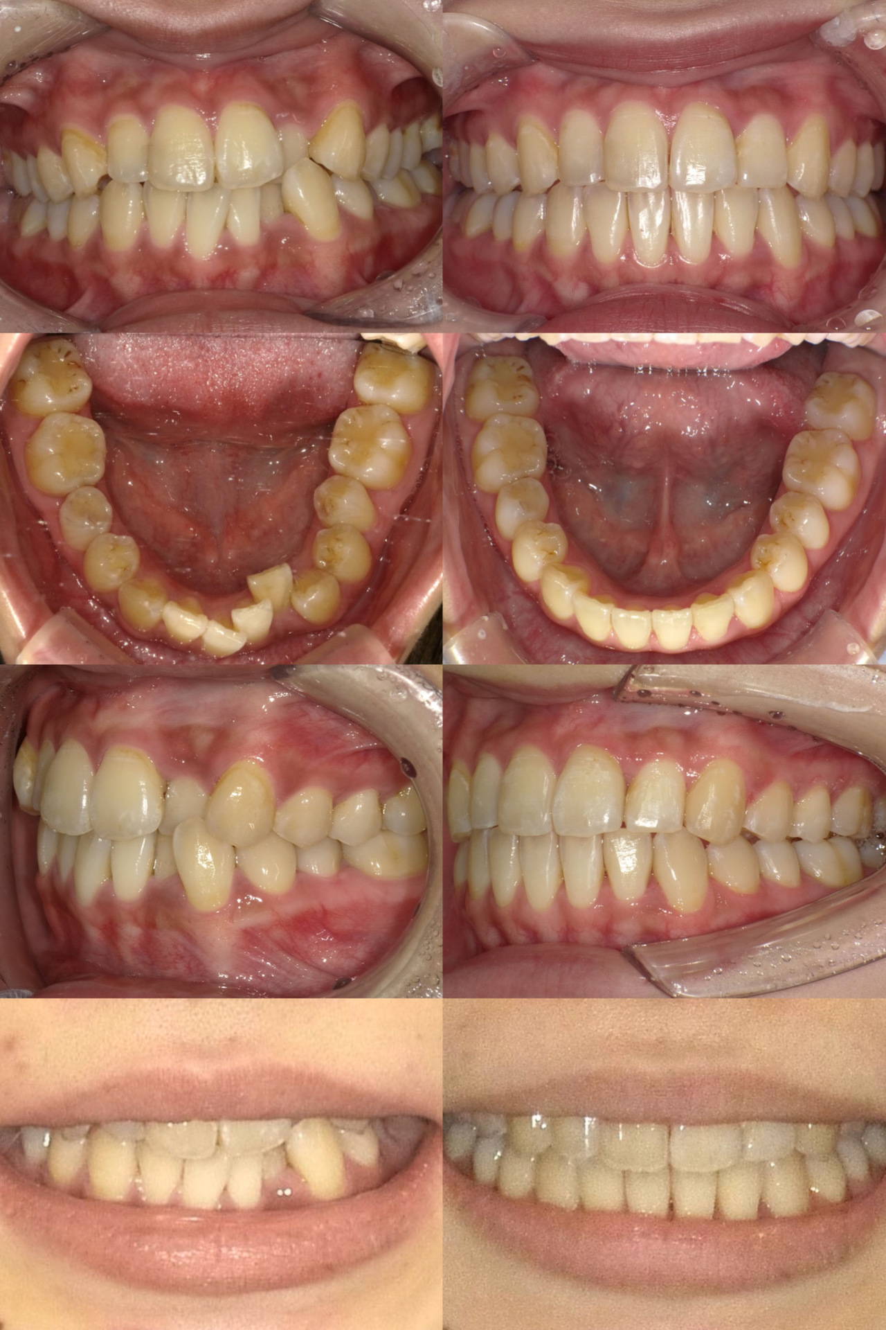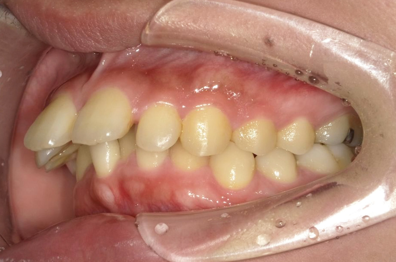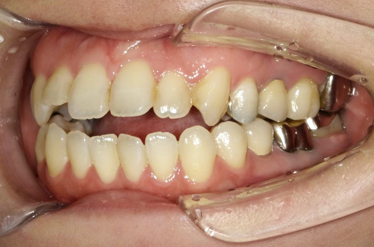 治療内容 | 奥歯の高さが低く、前歯を後方に移動する方法をとると、矯正後の咬み合わせが悪くなりやすい歯並びでした。